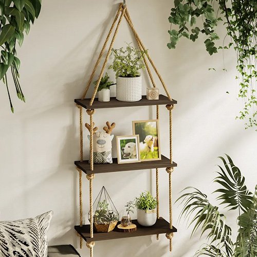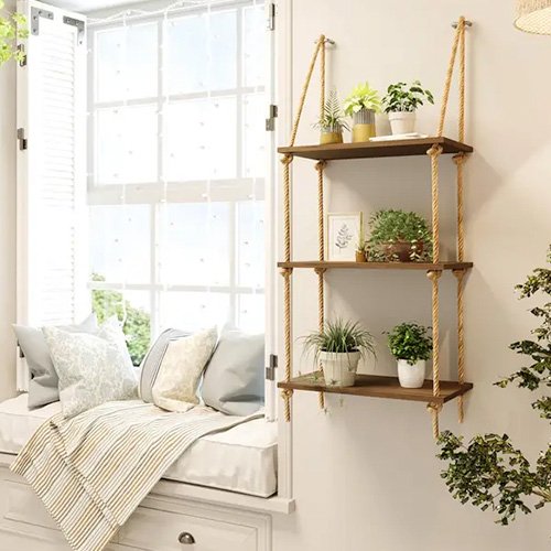 Idéale pour exposer plantes, livres, objets décoratifs ou souvenirs, elle optimise l’espace tout en habillant élégamment vos murs. Le mariage du bois naturel et de la corde crée une ambiance chaleureuse, authentique et tendance.